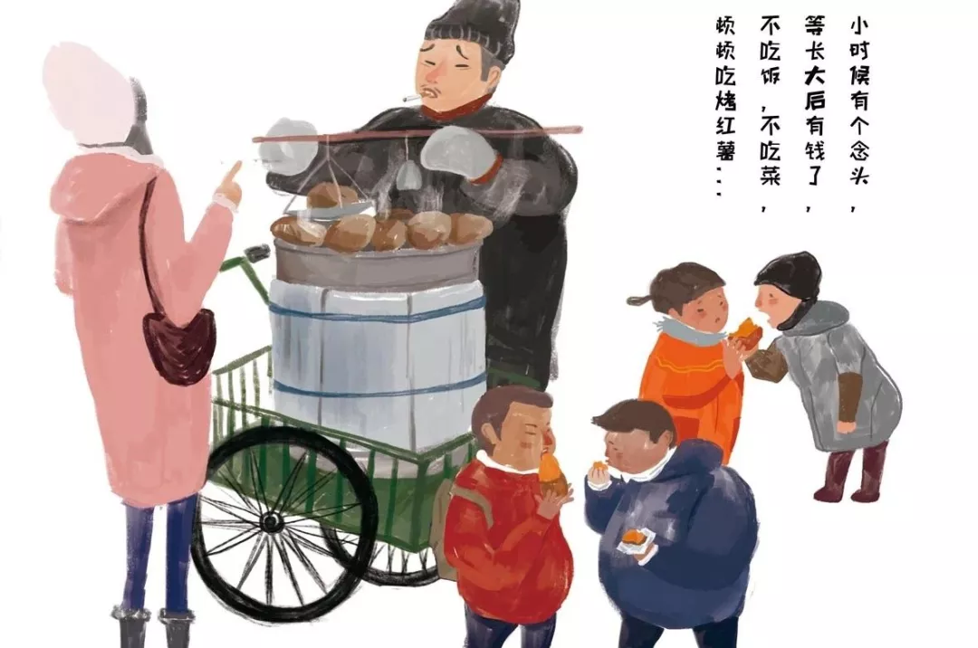 在鄉村,寒冬里親朋好友圍坐烤火取暖時,順便烤上幾個紅薯,邊吃邊聊天,是許多人對老家的永恒記憶;在都市的街頭巷尾,大爺大媽們推著帶輪的烤箱賣烤紅薯也是一道常見的風景;下班后或周末的晚上,用微波爐、電烤箱等烤紅薯更是許多家庭的日常。